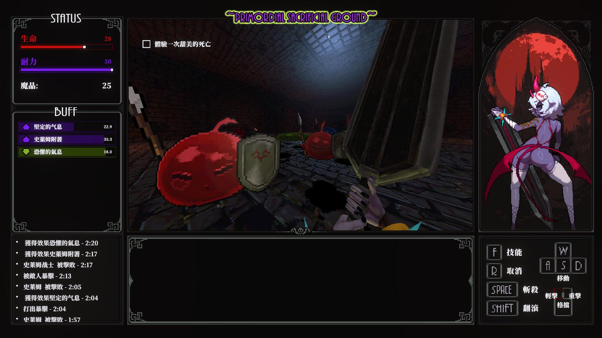 使用 A/W/S/D 键移动,Shift 键进行回避。